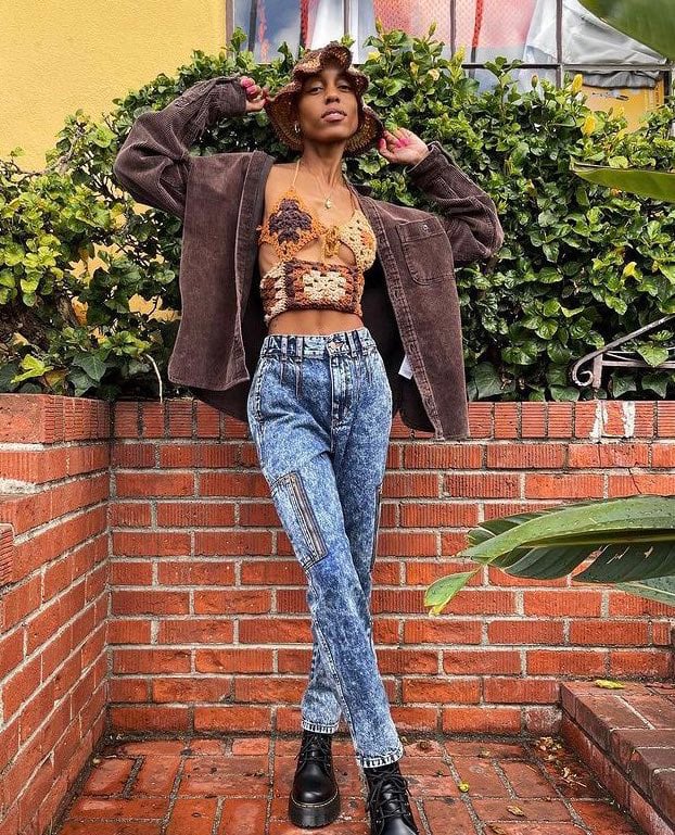 - Earthy toned top with a halter style back