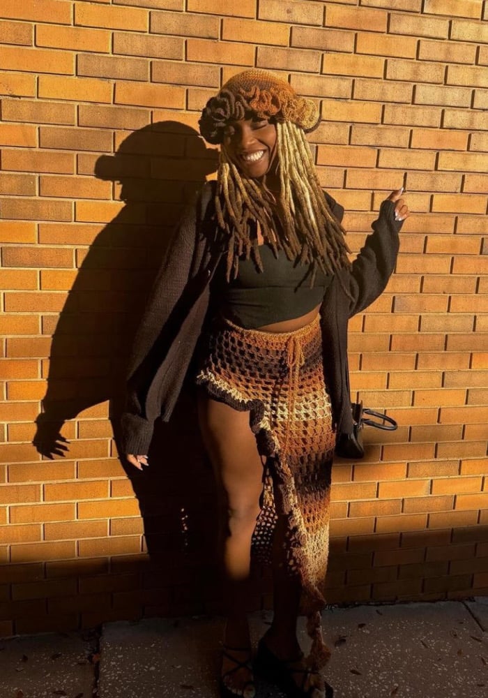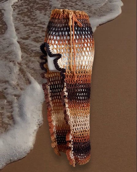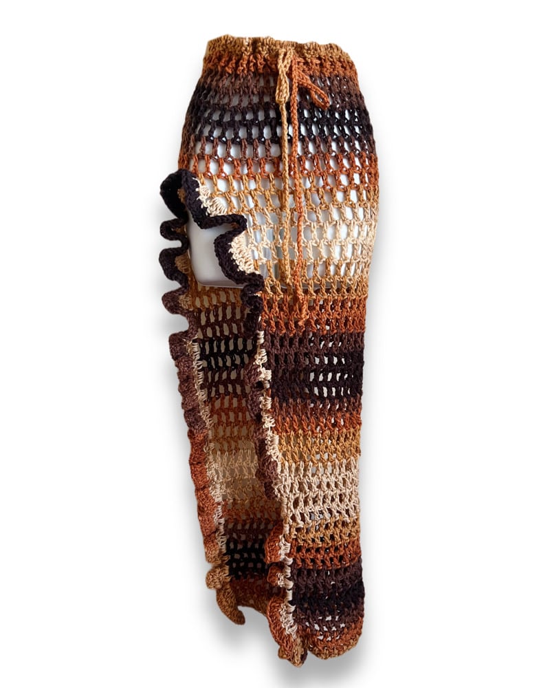 - Netted maxi skirt with a sexy high high slit with crocheted ruffle detail